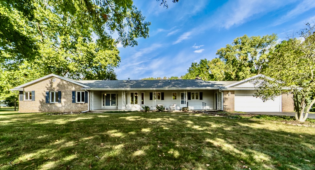 Rare Ranch Set on a private, picturesque, rolling near acre framed by mature trees and garden beds and backing to the phenomenal Pittsford Trail System which meanders through “forever wild” to the Erie Canal, a unique opportunity awaits. Approaching this special home, note the porch running the entire front of the house, creating a warm and welcoming entrance. Step through double doors into the tiled foyer with coat closet, which opens to a spacious living room. Tall windows flood the space with natural light and overlook the beautiful rear yard where deer can often be spotted frolicking and colorful birds dot the landscape. The living room flows seemlessly into the dining room enhanced by crown molding, a large window, and a built-in custom buffet with cabinets and drawers—ideal for entertaining. The open concept plan continues into the sprawling paneled family room, featuring pegged oak floors, a gas fireplace on a brick wall with marble mantel, twin log storage nooks, built-in bookcases, and large storage cabinets. Glass doors open to a tiled, heated/cooled sunroom with walls of windows, a ceiling fan, and access to the capacious rear yard. Imagine the wonderful family and friend gatherings in these two adjacent spaces! A cook’s kitchen awaits with a GE five-burner gas stove, built-in double ovens, abundant cabinetry, tiled backsplash, and a peninsula offering plenty of prep space. The eat-in area, with tall windows overlooking the front yard, includes a glass-front cabinet to display kitchen wares. Adjacent is a tiled powder room, first-floor laundry with utility sink and storage, and a walk-in cedar closet. The bedroom wing boasts a primary suite featuring built-in bookcases and cabinetry, two sets of closets, and an updated bath with granite counters, tiled shower with built-in bench. Two additional bedrooms—perfect for guest, office, or studio—share a tiled family bath with shower and tub. An attached two-car garage with access to both the front porch and rear yard and a full unfinished basement with abundant storage & an activity room awaiting finishing touches complete this home. This remarkable offering is within easy reach of walking trails, schools, shopping, parks, and expressway access. - the perfect home to write your story this Fall.