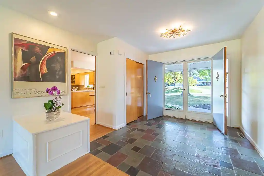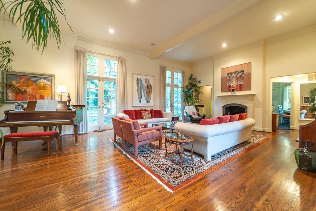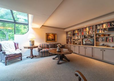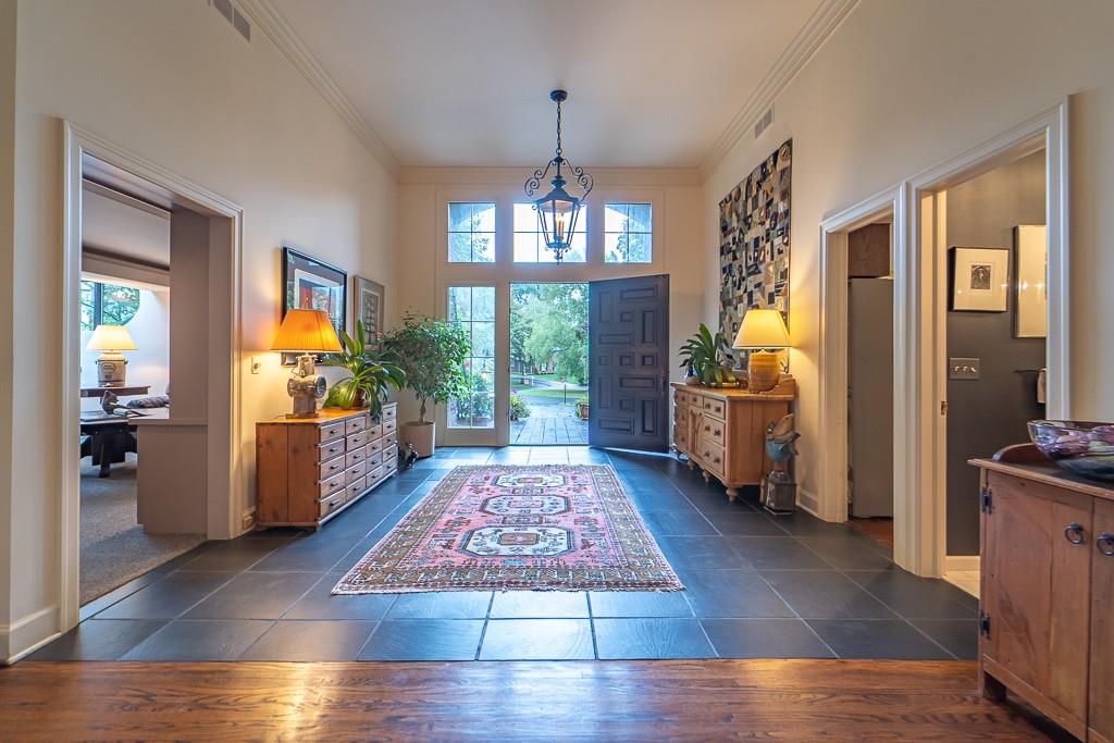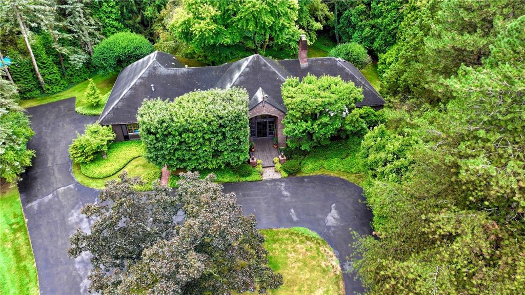 Country Club Estate. A castle drawbridge–style entrance and imposing front door with copper accents, flanked by pillar lanterns and soaring windows, sets the stage for this dramatic, exquisite Garrett-built brick ranch. Inside, a spacious slate foyer with a massive wrought-iron lantern chandelier opens to an uber-grand formal living room with 12’6” ceilings, crown moldings, hardwood floors and a monumental wood-burning fireplace. A trio of towering French doors with transoms flood the living/dining area with light and open to a sweeping slate patio bordered by a low brick wall, perfect for morning coffee. The flowing floor plan continues to the dining room, connecting seamlessly to the chef’s kitchen through a classic butler’s swinging door. The kitchen features a granite-topped island with surface grill, granite counters, peninsula with seating, abundant cabinetry, gas stove, built-in oven, LG refrigerator, pantry and spice cabinet. A pass-through window opens to the Florida/breakfast room with brick accent wall, sunlit atrium windows, and terra-cotta flooring. Access to the side door, 2-car garage and a hallway of lit storage makes entertaining effortless. Two extraordinary wings offer privacy: the family/guest wing has 2 ensuite bedrooms and a laundry room with double sink, cabinetry, craft table and ironing station. The serene premiere suite wing features oversized windows, French doors to the patio, dual dressing areas, extensive closets, 2 baths with tiled showers (one with soaking tub) and a vintage-style paneled oval office with soaring ceilings, built-in lit desk and floor-to-ceiling bookshelves. Additional spaces include a family room with built-ins, uplighting, tray ceiling and sun-filled atrium office. Powder room, full unfinished lower level and partial pull-down attic provide versatility. Set on beautifully landscaped grounds with mature trees and shrubs including Japanese and American maples and rhododendrons, within a private, sought-after neighborhood near schools, shopping, recreation and expressways, with a wide circular driveway and ample parking, this estate is ready for your personal touches to create a one-of-a-kind oasis. Delayed negotiations, Aug. 26 at 9am.