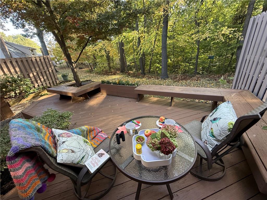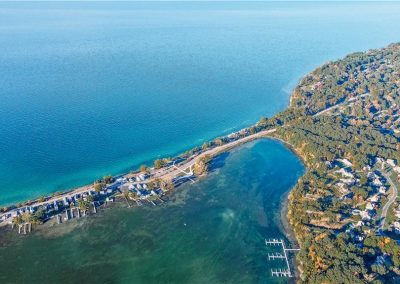 Rare Birdwatchers’ Paradise In Stony Point Landing’s Marine Community! Bring your binoculars! With 65 bird varieties right in the backyard, you’ll wonder… am I in a nature preserve or at home? Forever-wild views surround you as you relax on your deck’s built-in benches framed by a canopy of trees. The air is alive with the rustle of Autumn leaves in gold, auburn, chartreuse, and berry red. Life slows down, you’re on a staycation. You send a quick text to friends: GONE FISHING! Follow North Cove Drive past nearby green space and stunning views of Irondequoit Bay as you wend your way down the drive/walkway to the new dock system. Spend the day kayaking or paddle boarding across the bay or play pickleball on the community courts. Later, enjoy cocoa with a neighbor before returning to the peace of your own home, where indoor and outdoor living mesh magically. Inside, a paneled den with built-in desk is perfect for work or reading; while the dramatic great room boasts skylights and soaring ceilings, gas fireplace and sliding glass doors to the deck for al fresco dining. The spacious formal dining room with bay window is a graceful step up from the great room. The eat-in cook’s kitchen with breakfast bar is sure to be your favorite spot to perch with a cup of coffee. Unique details include custom built-in bookshelves in both the kitchen and also flanking the staircase leading down to the expansive workshop with walls of cabinetry in the lower level. As the sun sets, retreat to the second floor to your surprisingly gigantic bedroom with a large walk-in closet and ensuite bathroom with jetted tub and glass shower. A convenient 2nd floor laundry and second bedroom suite complete this upper floor. Serenity surrounds you: your playground, your community, your sanctuary. Offer due Monday, October 20 @ 12PM