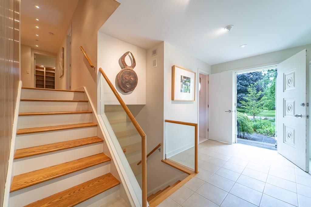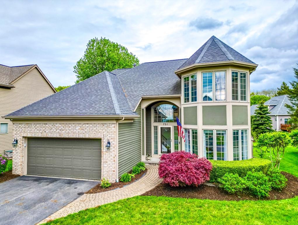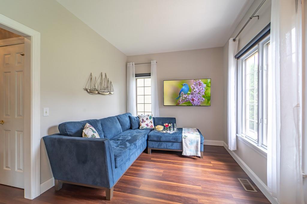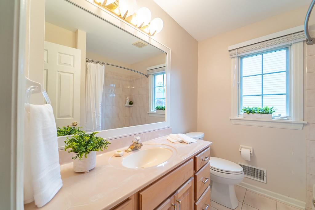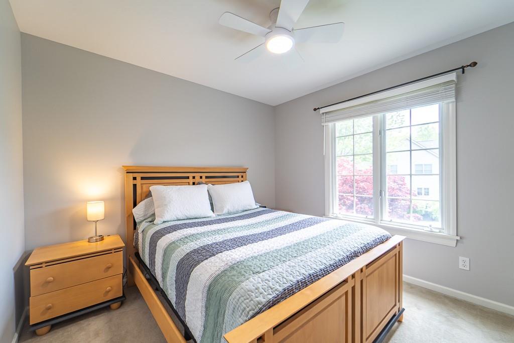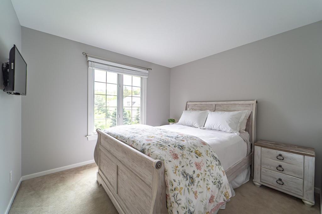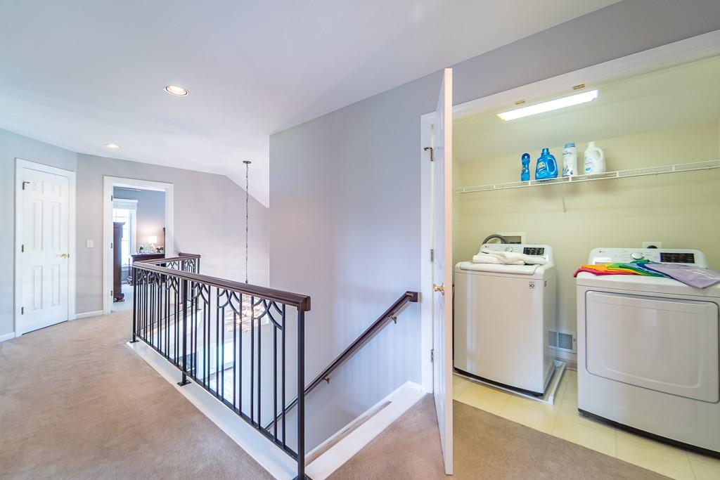 Nestled on your own private oasis, find a move-in ready end unit townhome. Be wowed by this dramatic light-filled home with soaring ceilings, flexible spaces & today’s vibe. The dining room has sky high ceilings & contemporary lighting. The happy kitchen has a charming breakfast bar for casual meals. The sunny, vaulted ceiling living room features a floor-to-ceiling white brick fireplace. An updated powder room and 1st floor laundry room complete this level. The contemporary staircase sports a charming window seat. The loft suite with vaulted ceiling with fan is a perfect master suite/art studio/office. A 2nd bedroom offers respite at day’s end. A finished lower level with wall to wall carpet is a perfect exercise or rec room. The private deck is the perfect outdoor living room.