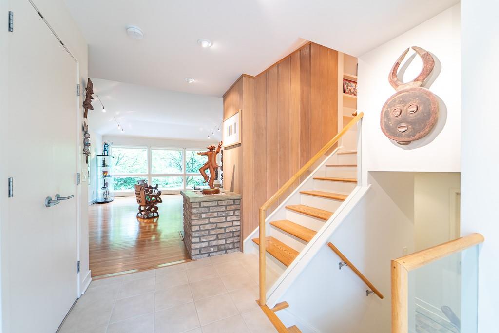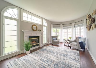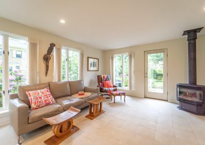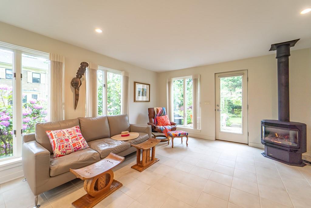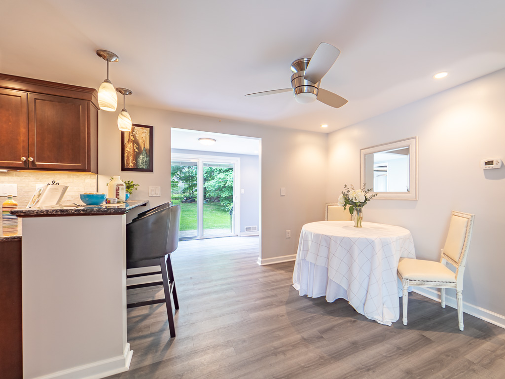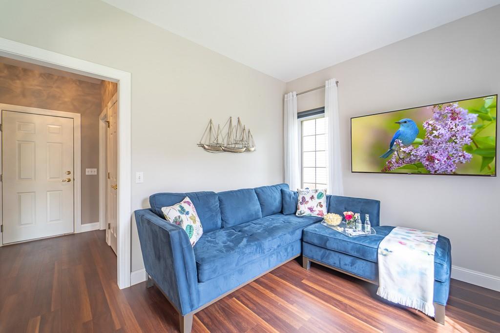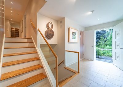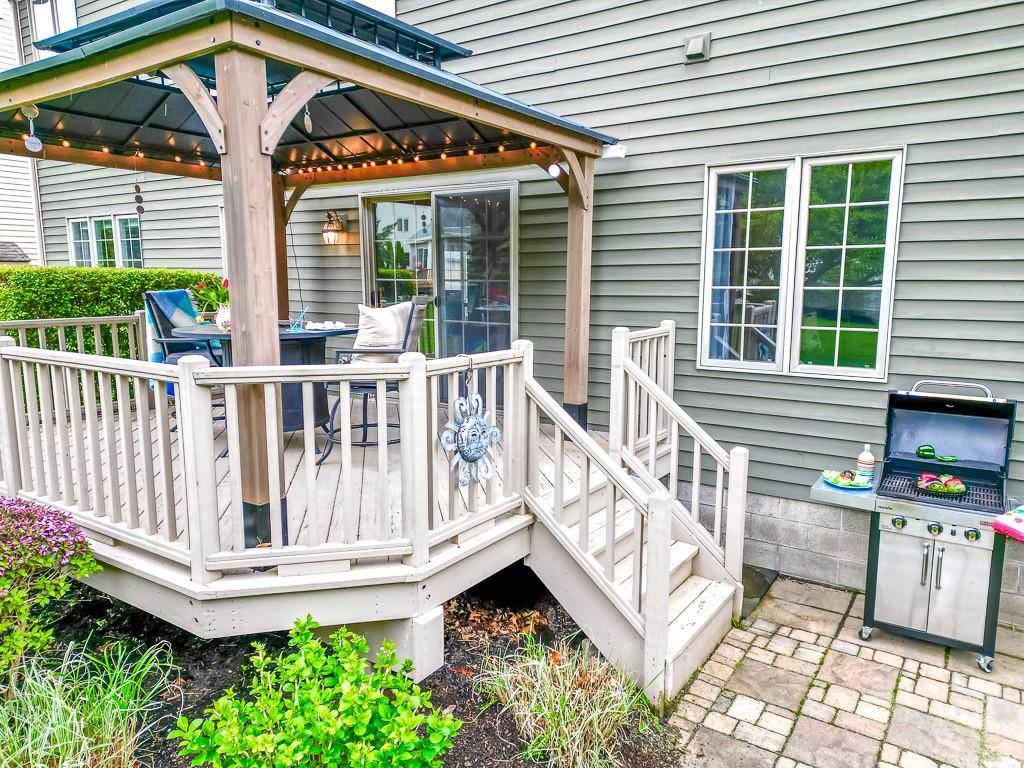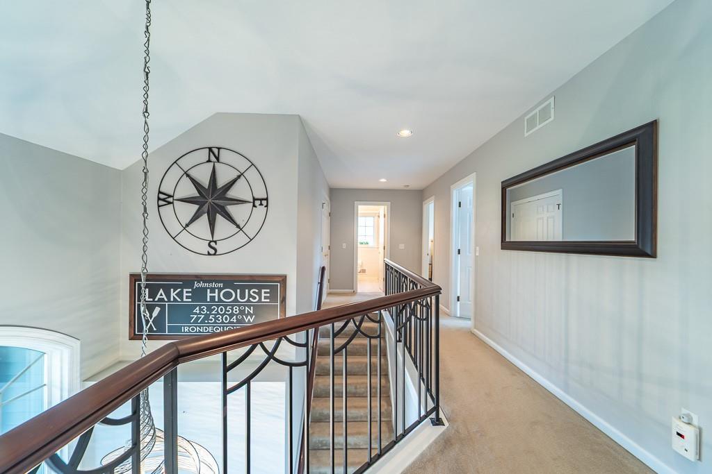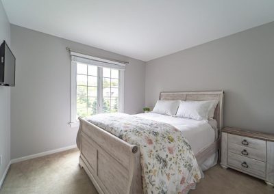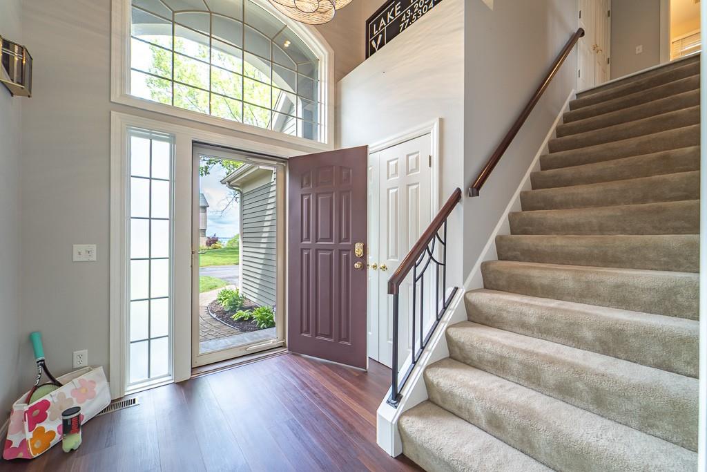 Nestled on your own private oasis, find a move-in ready end unit townhome. Be wowed by this dramatic light-filled home with soaring ceilings, flexible spaces & today’s vibe. The dining room has sky high ceilings & contemporary lighting. The happy kitchen has a charming breakfast bar for casual meals. The sunny, vaulted ceiling living room features a floor-to-ceiling white brick fireplace. An updated powder room and 1st floor laundry room complete this level. The contemporary staircase sports a charming window seat. The loft suite with vaulted ceiling with fan is a perfect master suite/art studio/office. A 2nd bedroom offers respite at day’s end. A finished lower level with wall to wall carpet is a perfect exercise or rec room. The private deck is the perfect outdoor living room.
