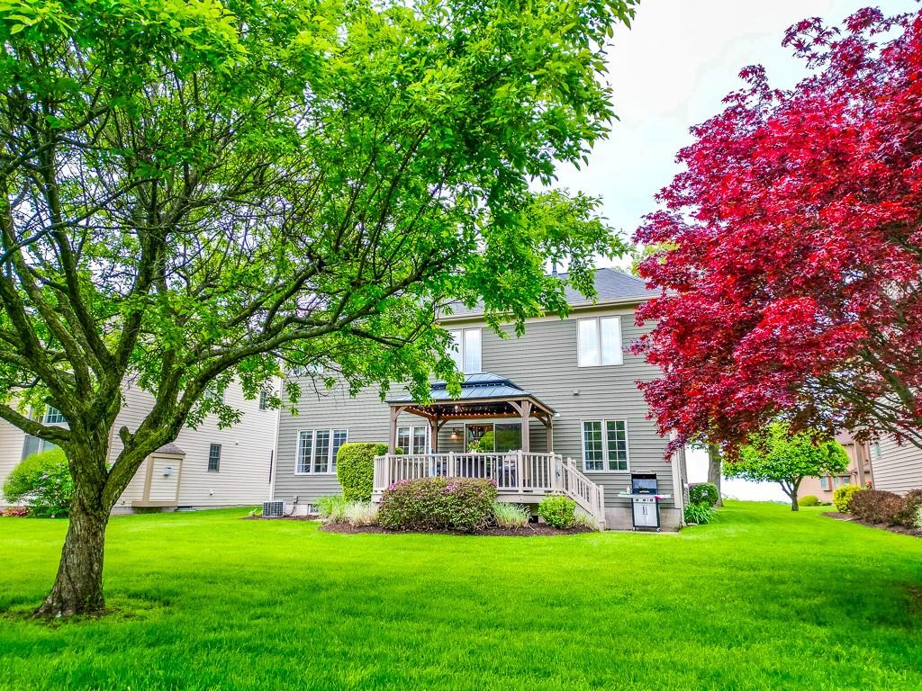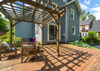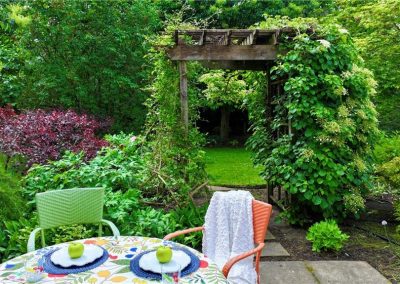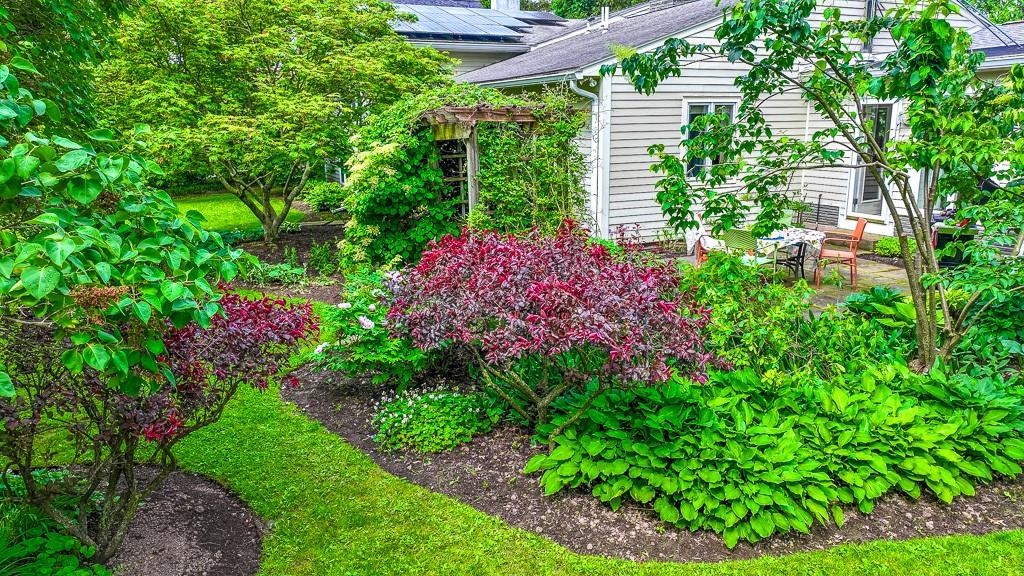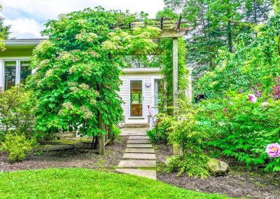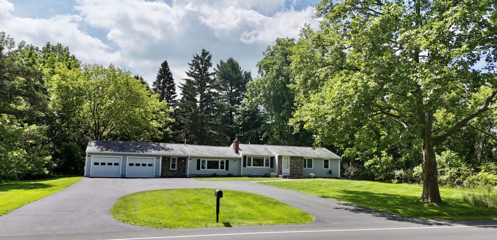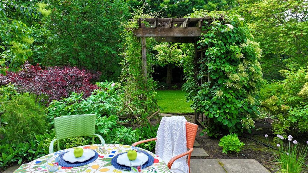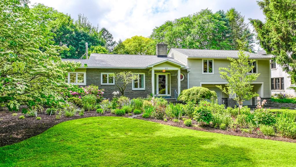 Verdant Enchantment! Dreaming of a park-like oasis close to all conveniences? The delights of this storybook Tudor will make your dream come true as home and garden unite. The sumptuous family room overlooks a slate deck perched above lush grounds with perennial flower beds, uplit mature flowering trees, scenic brick walkways and meditation garden. A completely remodeled, stunning kitchen boasts expert craftsmanship. Three ensuite bedrooms envelope you at day’s end. Finished lower level has kitchenette and two finished areas – perfect for teen hangout/workout area/playroom. Sunroom, library, fireplaced living room, expansive dining room and finished third floor provide more delights. Final surprise? Captivating unfinished 550 sq.ft. carriage house with two-car garage, heated second floor with electric, awaiting your finishing touches!