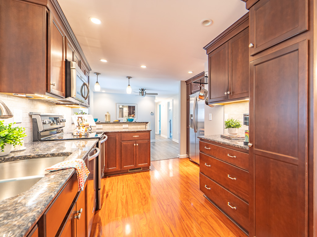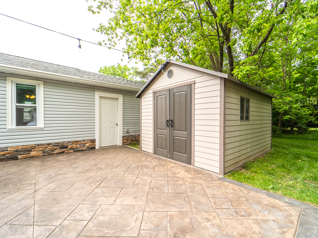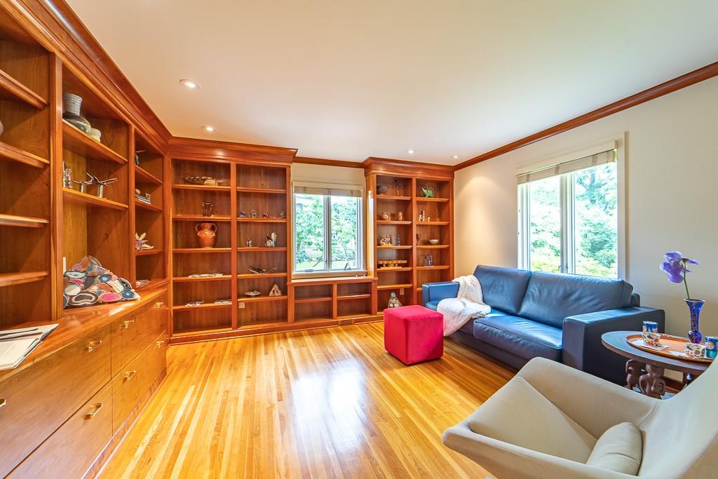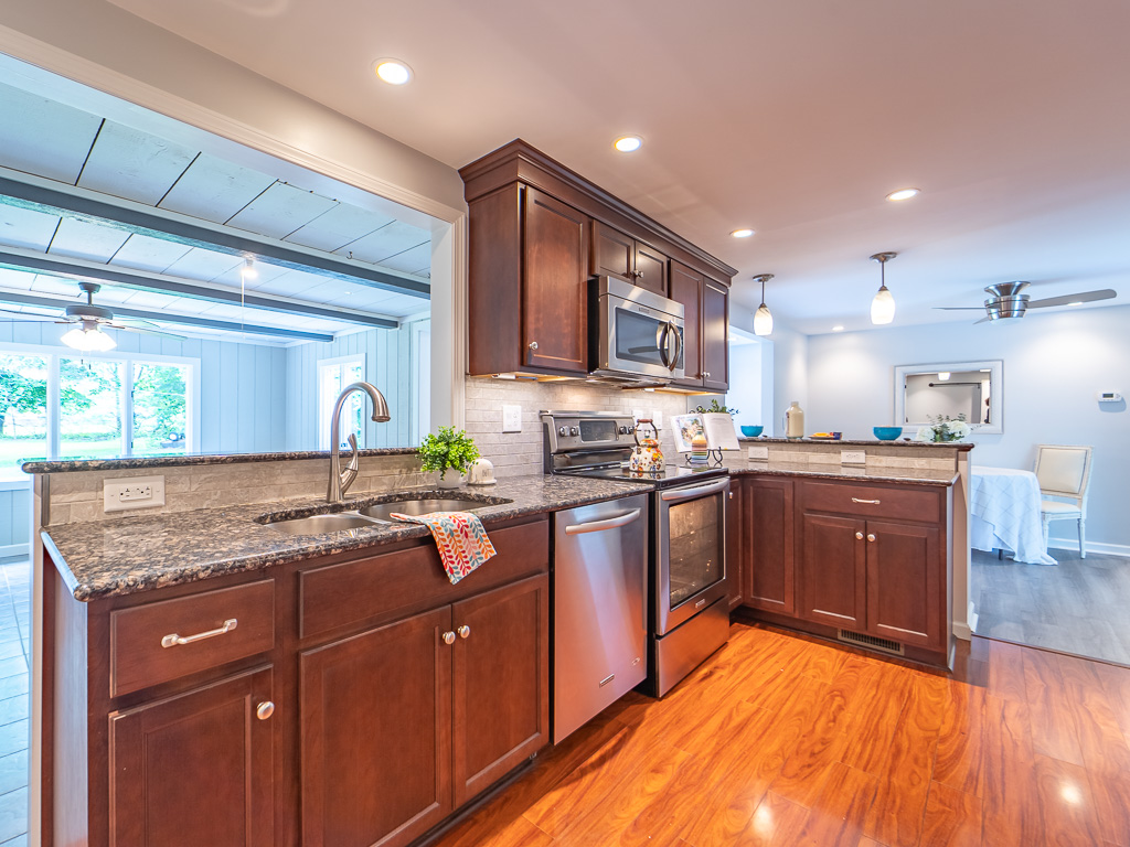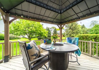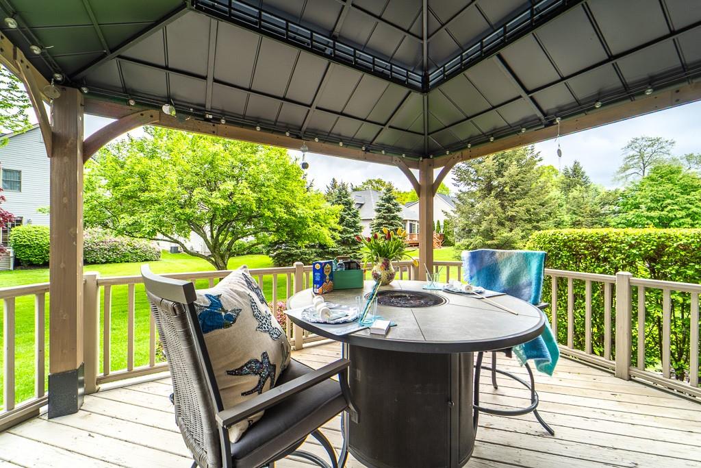 Verdant Enchantment! Dreaming of a park-like oasis close to all conveniences? The delights of this storybook Tudor will make your dream come true as home and garden unite. The sumptuous family room overlooks a slate deck perched above lush grounds with perennial flower beds, uplit mature flowering trees, scenic brick walkways and meditation garden. A completely remodeled, stunning kitchen boasts expert craftsmanship. Three ensuite bedrooms envelope you at day’s end. Finished lower level has kitchenette and two finished areas – perfect for teen hangout/workout area/playroom. Sunroom, library, fireplaced living room, expansive dining room and finished third floor provide more delights. Final surprise? Captivating unfinished 550 sq.ft. carriage house with two-car garage, heated second floor with electric, awaiting your finishing touches!