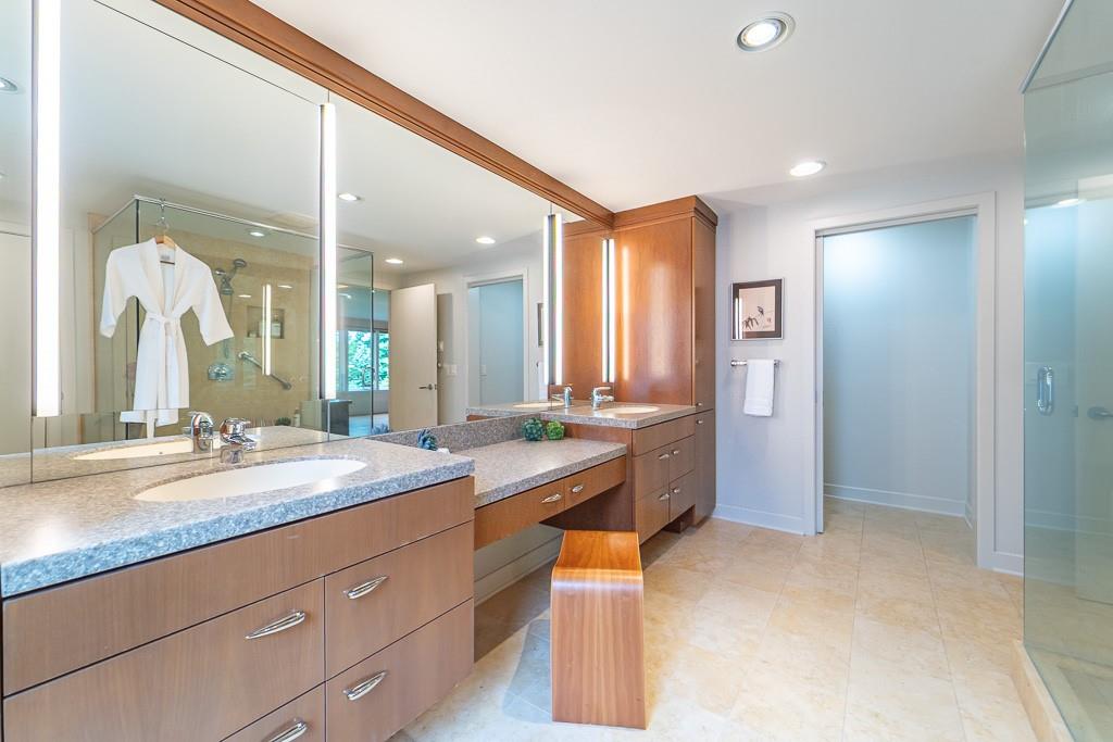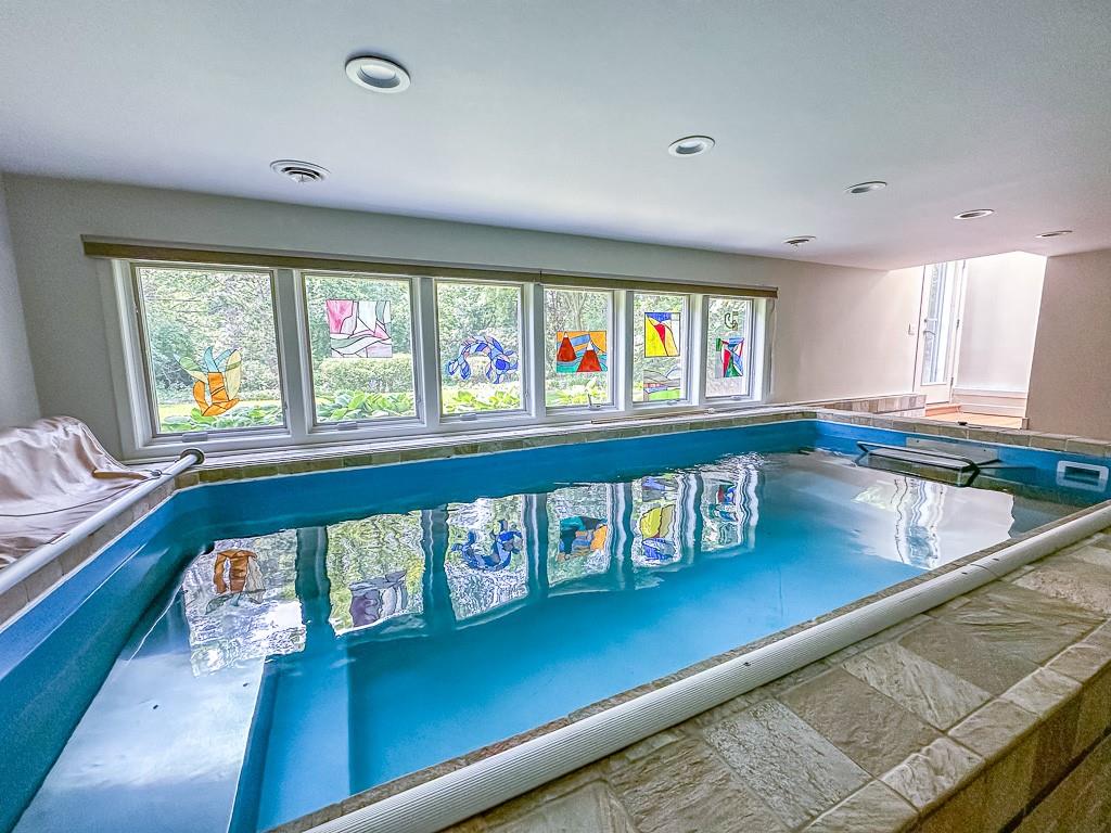 Listed by Jamie Columbus! Mist covered hills in splendid Fall foliage envelope this resplendent oasis. Built with love by Polidori and Ferri Custom Homes, this transitional is of the highest standards is perched on the most picturesque & private location for this natural retreat. The beautiful azure pool reflects the amber, red & gold leaves on its surface. A cacophony of birds welcomes you & the burbling of the waterfall is a soothing backdrop. Step inside & be enthralled by the precision in construction & visionary upgrades. Extreme beauty is visible 360 degrees due to soaring ceilings & sky high windows. From moments relaxing with family, to grand entertaining, this home is suited for it all! The flexible square footage includes 638sf in the bonus room & 1,420sf in finished walk-out lower level per owner.